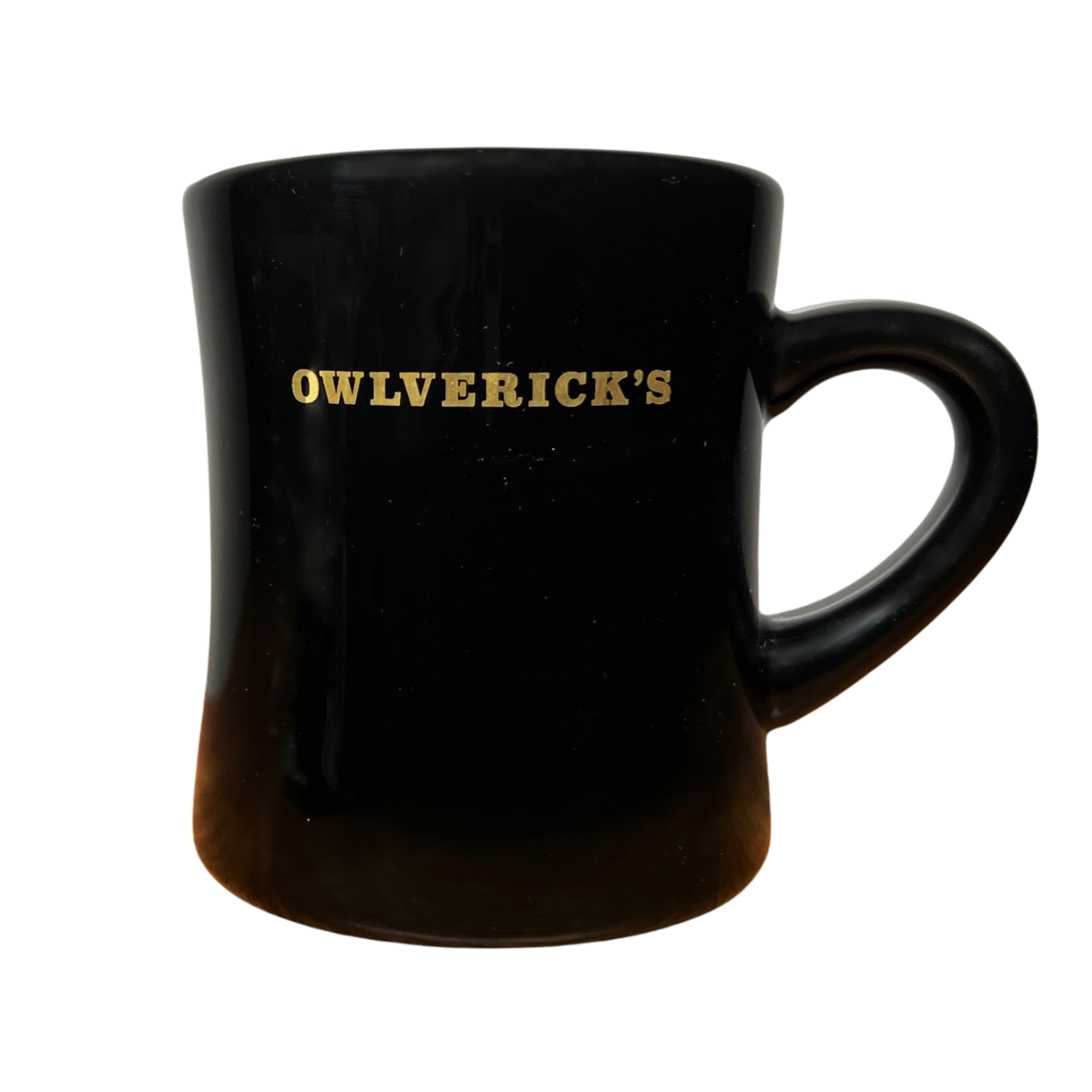 Classic 10 oz. Diner Mug in Natural. Owlverick icon on front, logo on back. Thick-walled to keep your coffee warm!