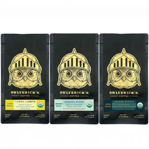 Front of Apri-Pop! Coffee Bag with Owl Design